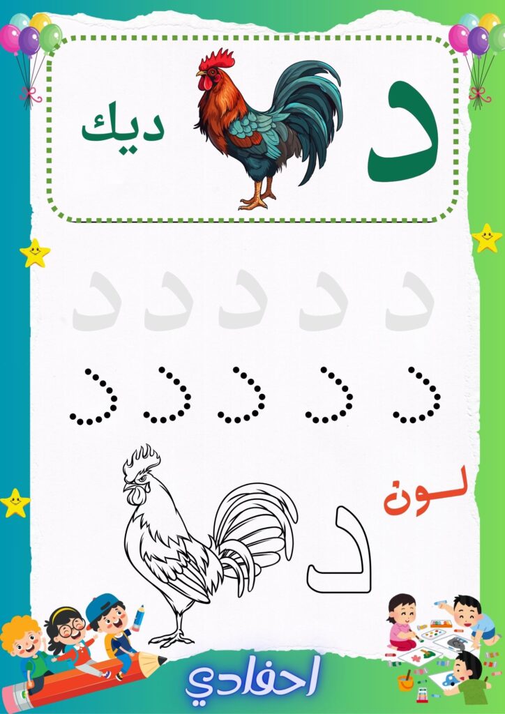 • 🐓 صورة معبّرة تبدأ بنفس الحرف (مثل: د – ديك)
